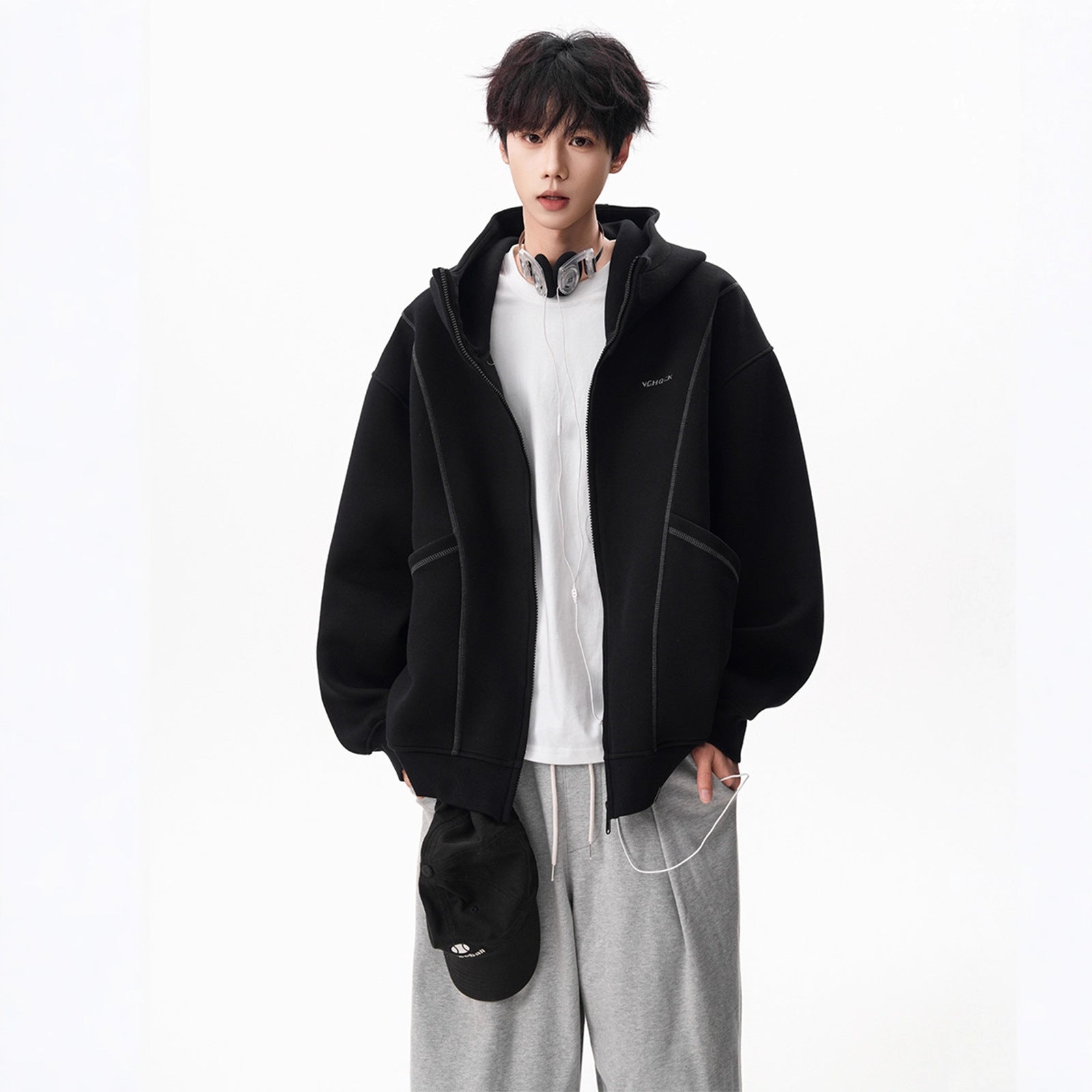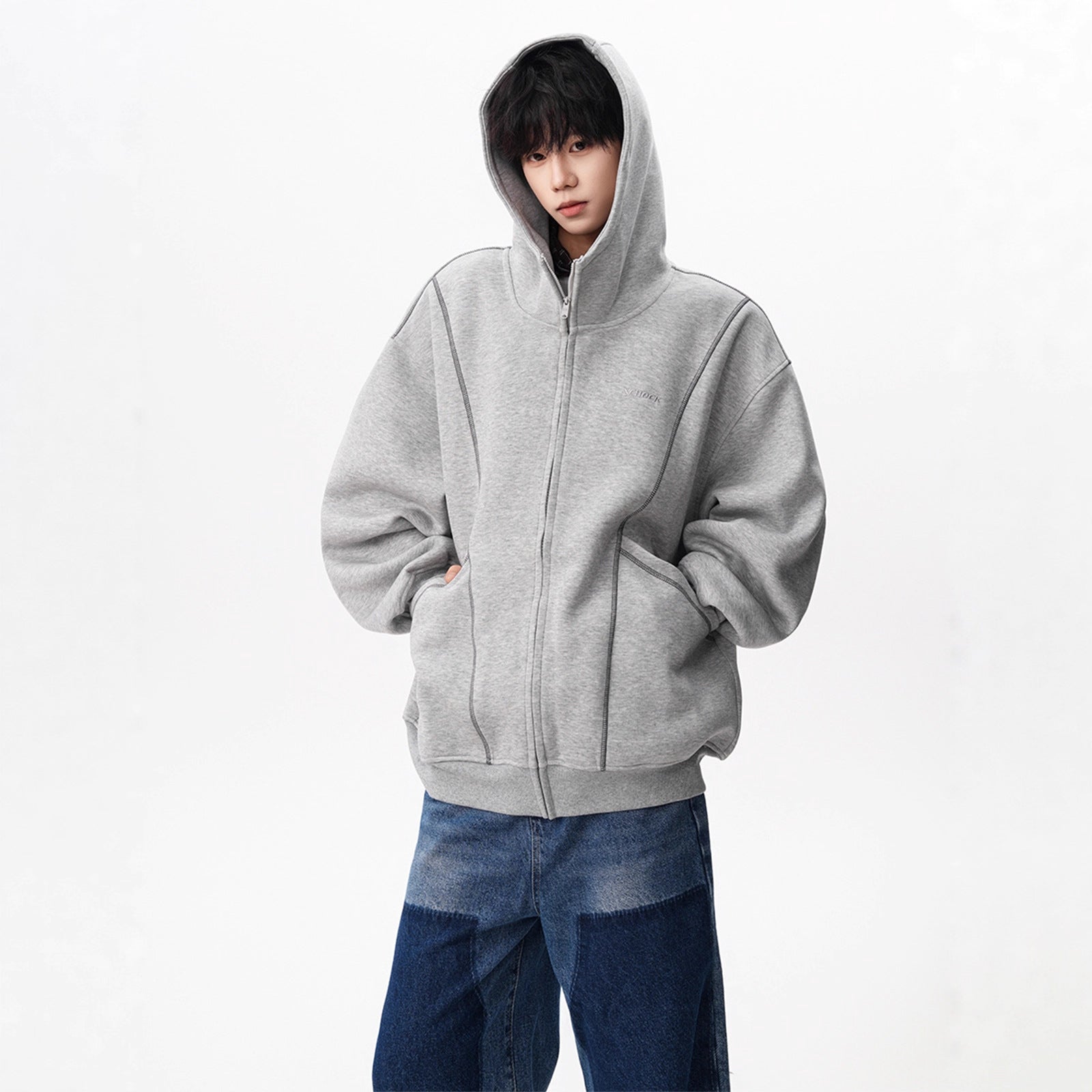 Style Solid Color Long Sleeve Zippered Hooded Oversized Sweatshirt Jacket for Men